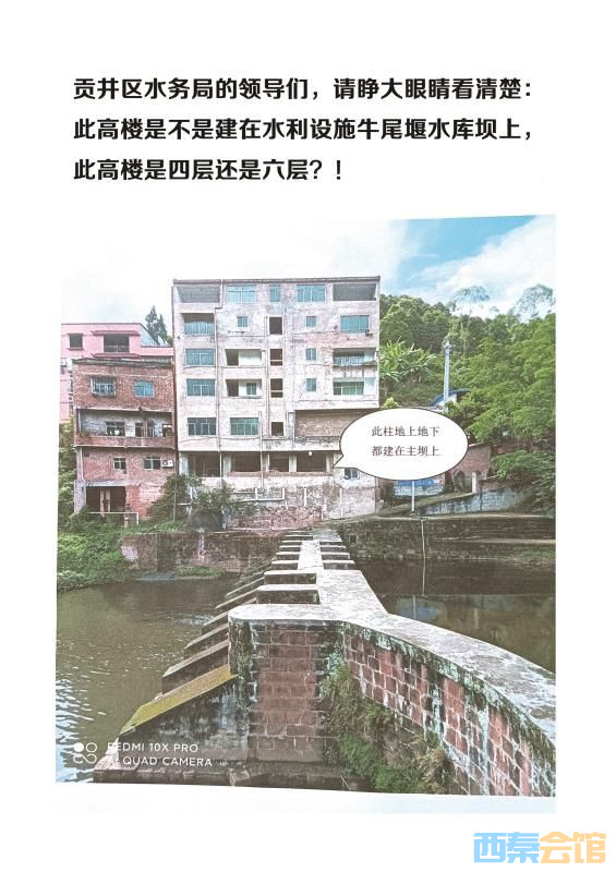 “杨大哥”在水利设施牛尾堰水库坝上建900平方米的六层高楼,出售给域外宜宾村民。