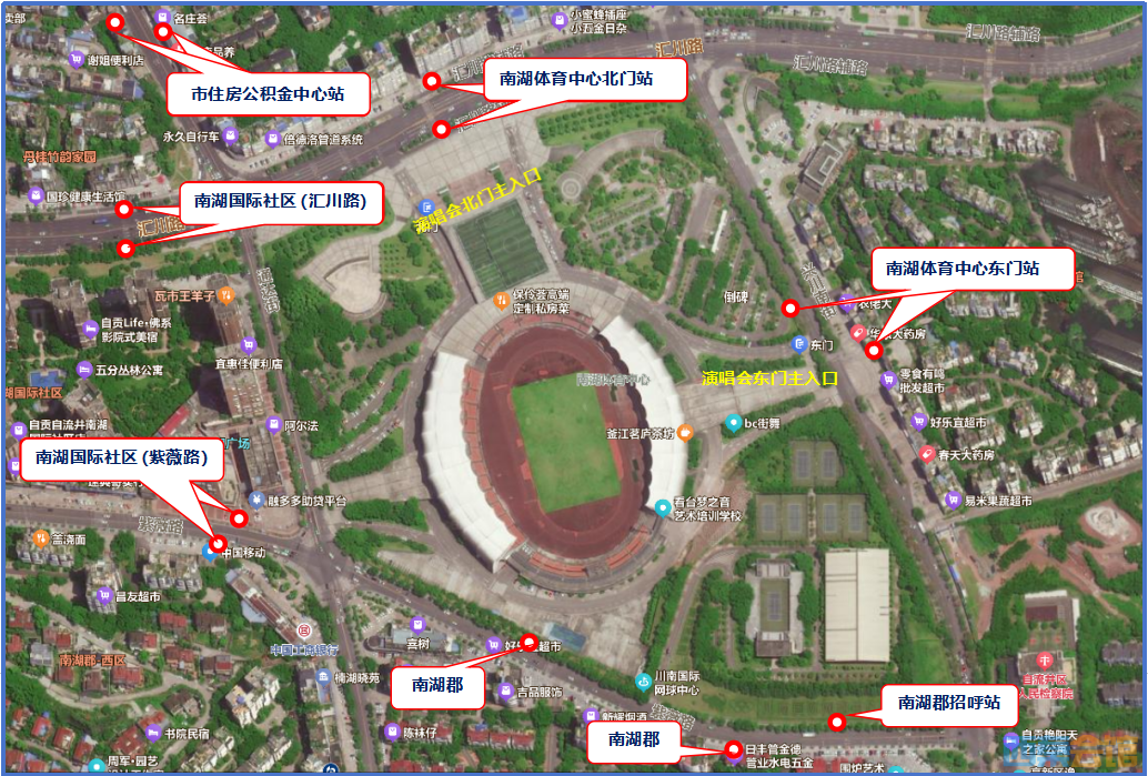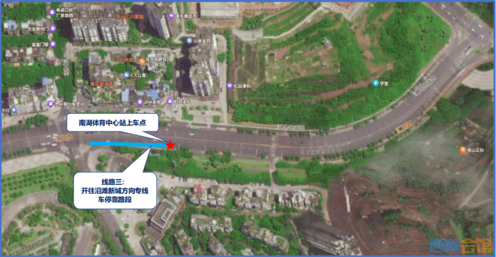 开场前:华商全季酒店(华商乘车点)→南湖郡2号门(南湖体育中心上下乘车点)散场后:南湖郡2号门(南湖体育中心上下乘车点)→华商蓝岸天街(华商下车点)