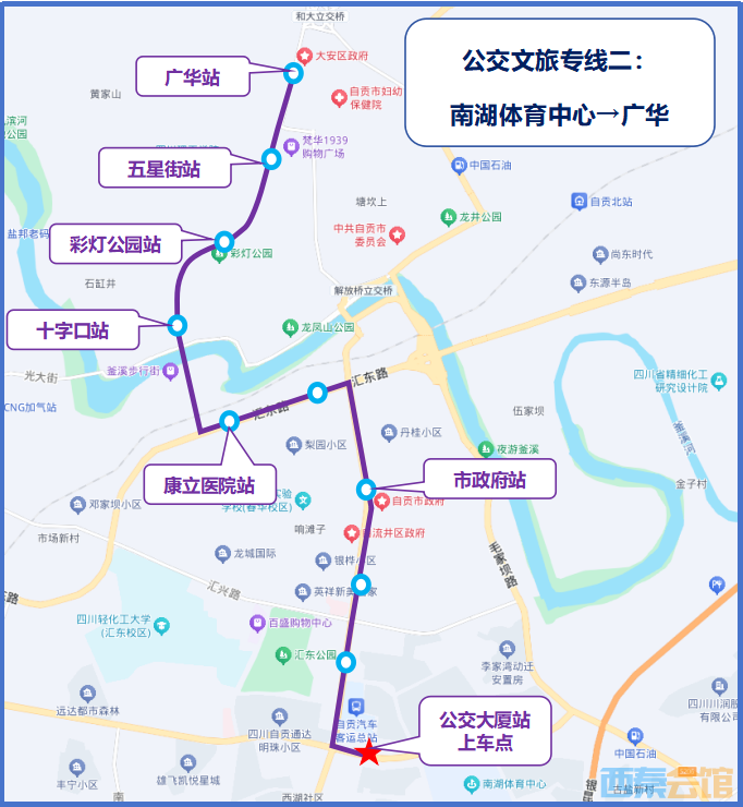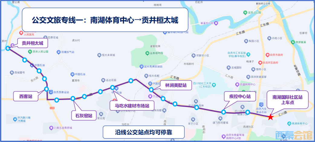 1.运行路线及停靠站点:南湖国际社区→市公安局→市疾控中心→大岩洞→川南农贸→自贡军分区→林涧美墅→马吃水→盐都花园→新成车业→石灰窑→石灰窑招呼站→自贡西客站→西客站招呼站→荣新贡院→长征大道招呼站→贡井桓太城